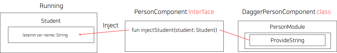 먼저 Student의 인스턴스를 만든 다음 아직 initialize 되지 않은 필드(name)를 주입하는 방식이다. 여기서 주입되는 값은 Provider에 의해 제공되는 값만 가능하다.