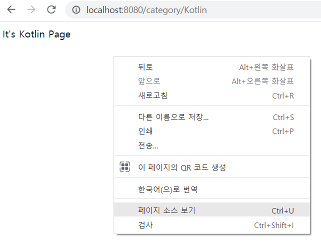 따라서 서버가 실행되는 위치가 localhost라면 위의 주소로 접속했을 때 kotlinCategory() function을 수행하게 된다.