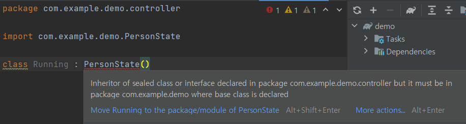해석: Running class가 com.example.demo에 선언된 경우에만 sealed class를 상속 가능하다.