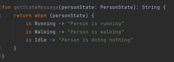 [그림1]에서와 달리 [그림4]에서는 오류가 생기지 않는다. 이유는 컴파일러에서 sealed class PersonState의 자식 클래스는 Running, Walking, Idle 세가지만 있는 것을 알고 있기 때문이다. 따라서 when에 else branch를 사용하지 않고도 필요한 메세지만 수신할 수 있게 되었다.