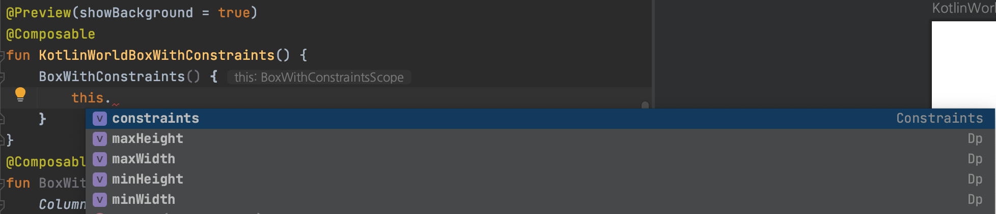 *Constraint란 BoxWithConstraints 레이아웃의 최대 크기, 최소 크기 값이다.