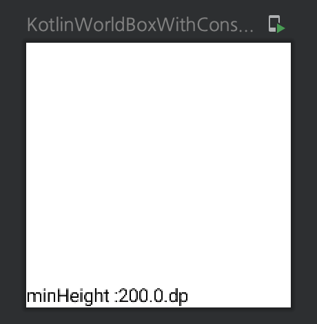 먼저 @Preview의 widthDp와 heightDp를 200으로 조정함으로써 BoxWithCosntraints가 Modifier.fillMaxSize()를 취했을 때 minHeight, maxHeight, minWidth, maxWidth가 200.dp가 되도록 조정한다. 이후 minHeight가 220dp보다 클 경우에만 Text를 출력하는 코드를 작성한다.