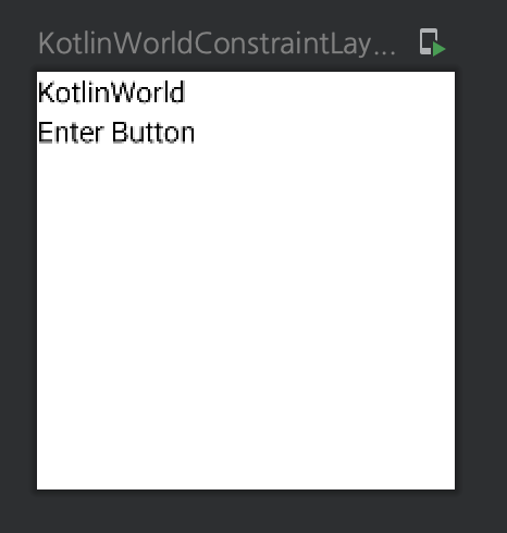 이 과정을 통해 다음의 View가 완성된다. KotlinWorld는 parent의 상단에 맞춰져있고 Enter Button은 KotlinWorld의 하단에 맞춰진 것을 볼 수 있다.