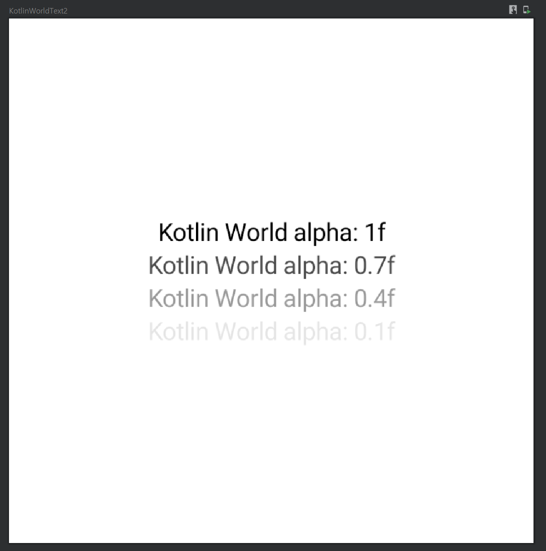 Text(text = "Kotlin World alpha: 1f", color = Color.Black)