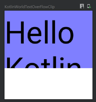 Text영역의 최대치는 modifier에 정의된 65dp이지만, "Kotlin" 단어는 줄바꿈이 일어나 그 범위를 벗어난다. 따라서 일부가 짤려서(Clip) 보이는 것을 확인할 수 있다.