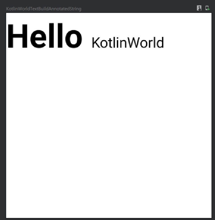 예를 들어 아래와 같이 "Hello Kotlin World"의 Hello에만 강조표시를 주고 싶은 경우 아래와 같이 하나의 Text 안에서 강조 표시가 가능해진다.