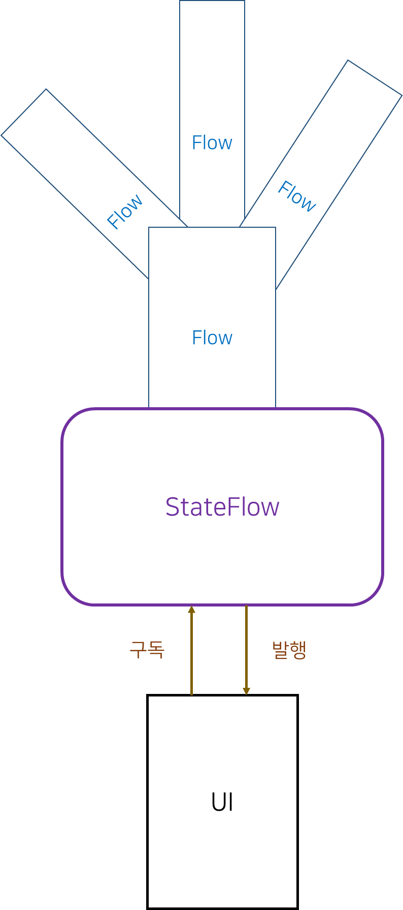 하나로 만들어진 Flow는 UI에서 사용되기 위해 StateFlow로 변환되어야 한다. 이 UI에서는 이 StateFlow를 구독하여 항상 최신 데이터를 발행받는다.