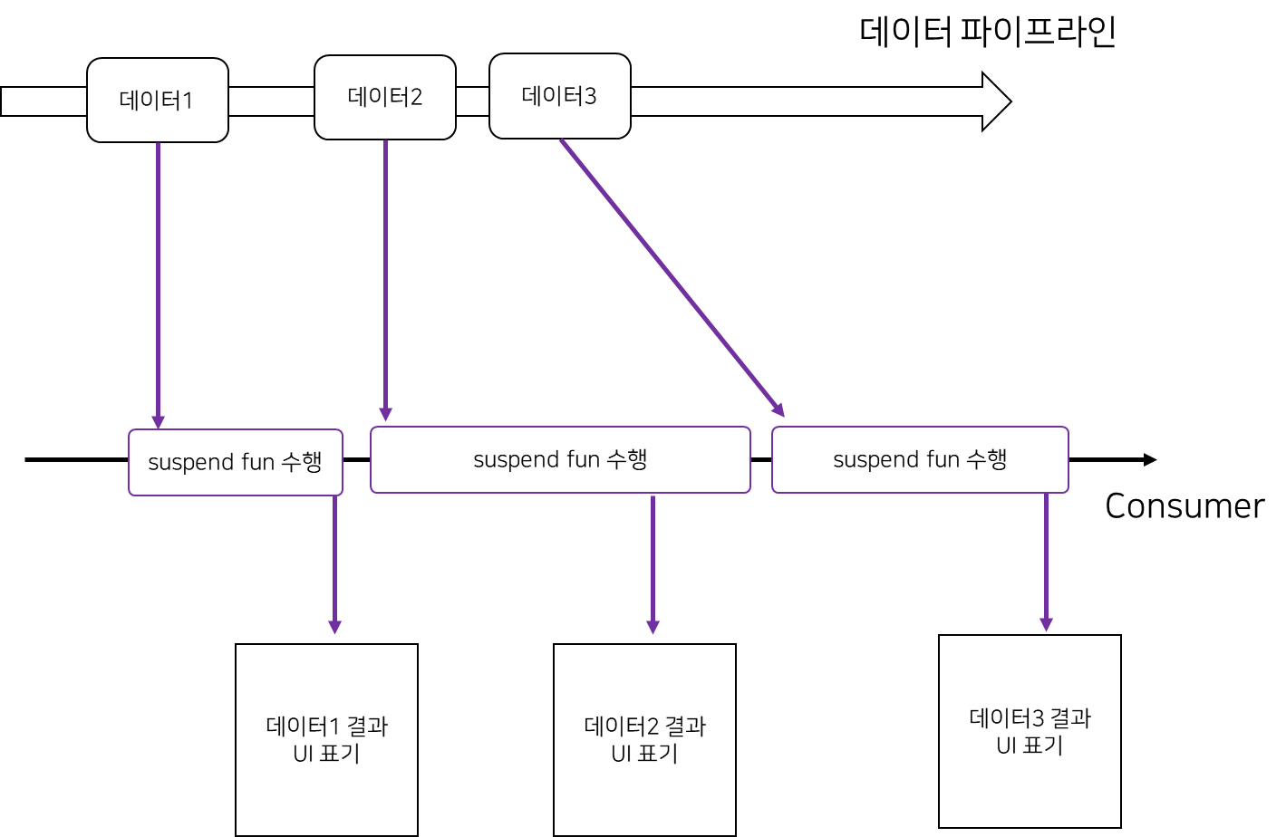 예를 들어 flow에서 발행되는 특정 데이터가 처리하기 위해 많은 시간을 소모한다고 해보자. 그림1과 같이 데이터2가 많은 시간을 잡아먹을 경우 최신 데이터인 데이터3이 화면에 표기되는데 지연이 발생한다. 만약 중간에 있는 데이터가 처리되는데 무제한 시간을 잡아먹게 되면 이후 발행되는 데이터들은 모두 처리가 되지 않을 것임을 뜻한다.