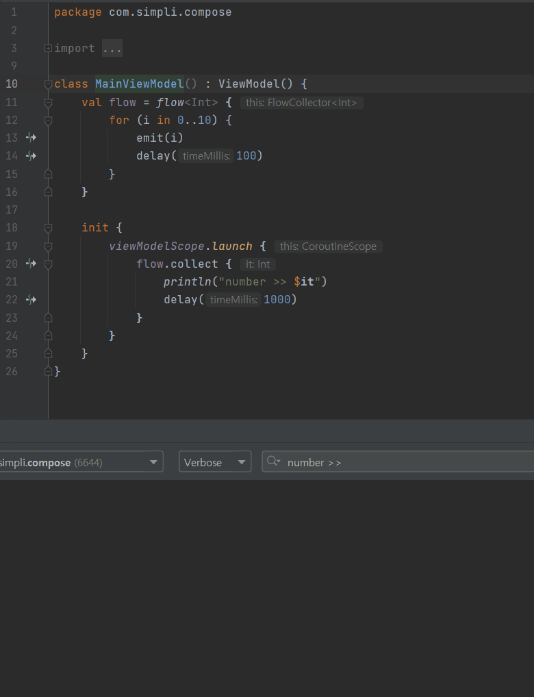 Flow는 Coroutine상에서 Reactive한 프로그래밍을 할 수 있도록 만들어진 데이터 파이프 라인이다. Flow는 데이터를 발행하는 역할을 하며 Flow에서 발행하는 데이터는 collect의 action 파라미터에 의해 소비된다.