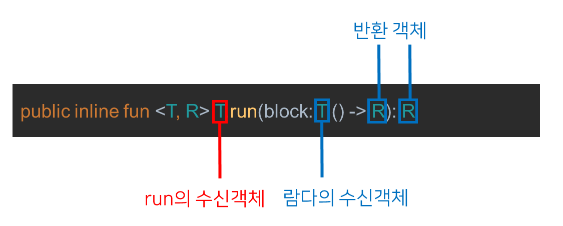run은 수신객체 없이도 동작할 수 있다. 다만 수신객체 없이 run을 사용하면 내부에 수신객체를 명시해줘야 한다.