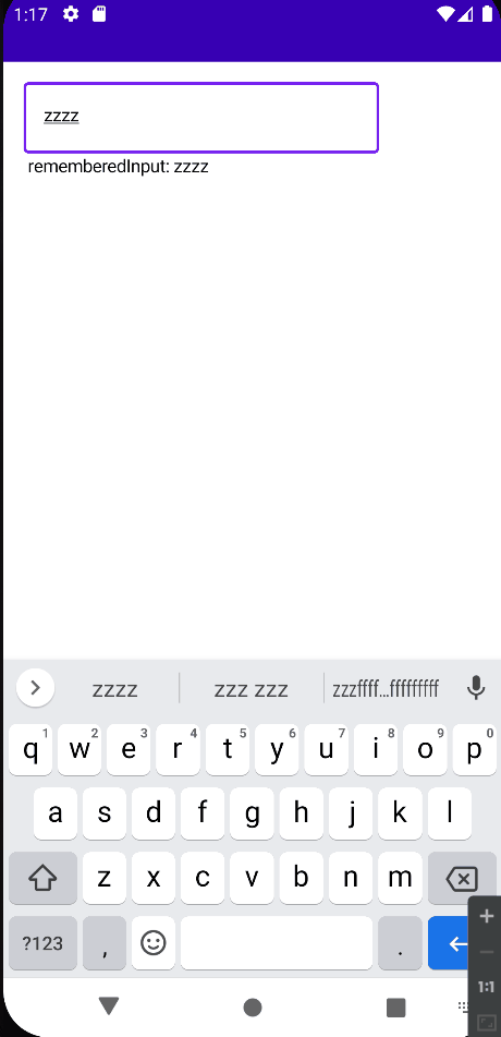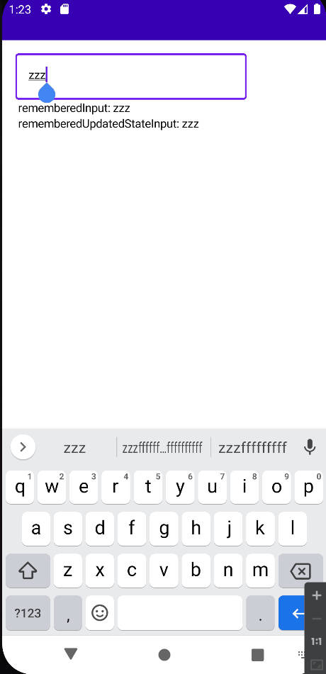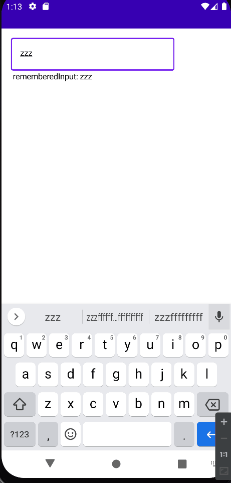 Text(" rememberedInput: $rememberedInput")