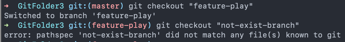 git checkout 또한 git switch와 마찬가지로 브랜치가 없을 경우에는 전환되지 않는다. 브랜치가 없을 경우 새로 브랜치를 생성 후 전환하고 싶다면 위에서 배운 git checkout -b 옵션을 추가해야 한다.