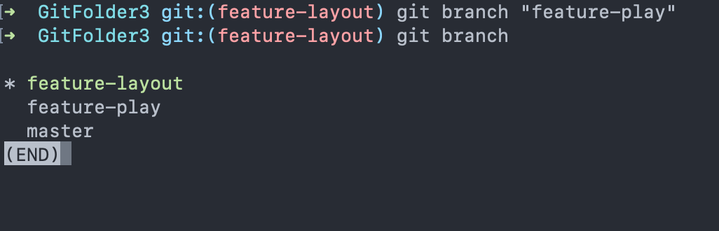 예를 들어 "feature-play" 라는 브랜치를 생성하고 싶으면 다음과 같이 작성하면 된다.