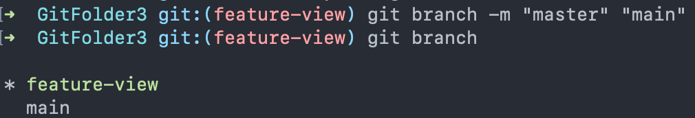 git branch -m "feature-view" // 브랜치 이름 변경