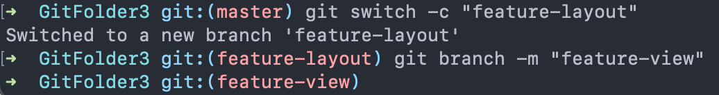 예를 들어 "feature-layout" 브랜치를 만든다음 해당 브랜치 이름을 "feature-view"로 바꾸고 싶다고 해보자.