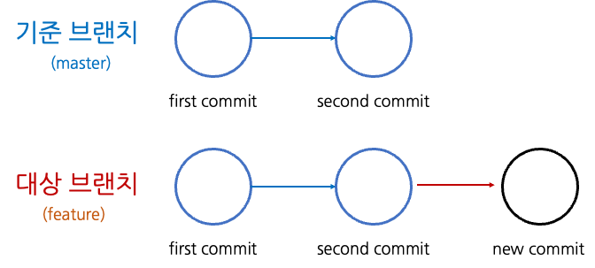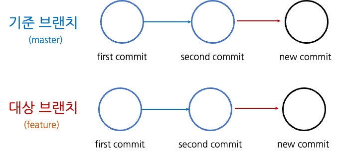git merge와 rebase는 모두 두 브랜치를 합치기 위한 명령어이다. 우리는 이곳에서 이 두 브랜치를 기준 브랜치와 대상 브랜치로 나눈다. 기준 브랜치는 master과 같이 기준이 되는 브랜치이고, 대상 브랜치는 feature 브랜치들과 같이 master에 합쳐져야 하는 브랜치이다.