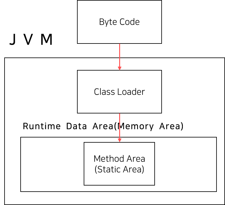 Method Area는 우리가 보통 정적(Static) 영역이라고 부르는 메모리이다. 프로그램 실행 중 클래스나 인터페이스를 사용하게 되면, JVM은 Class Loader을 이용해 클래스와 인터페이스의 메타 데이터를 Method Area에 저장한다. 즉, 클래스가 로드 되는 시점은 해당 클래스가 사용되기 위해 호출되는 시점이다. 여기서 메타 데이터는 Type Information, Runtime Constant Pool, Field Information, Method Information, Class Variable을 가리킨다.
