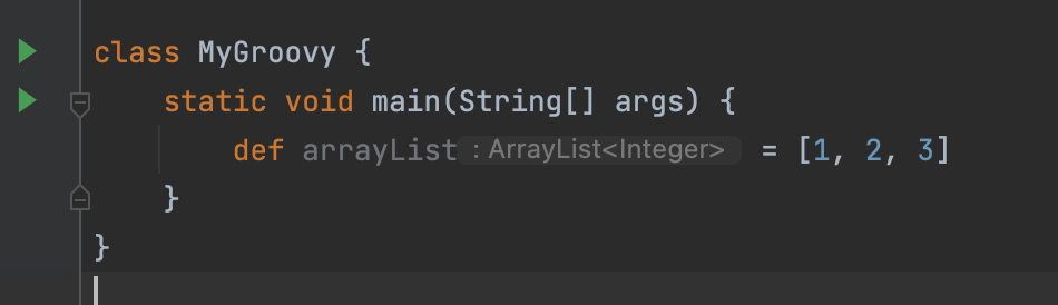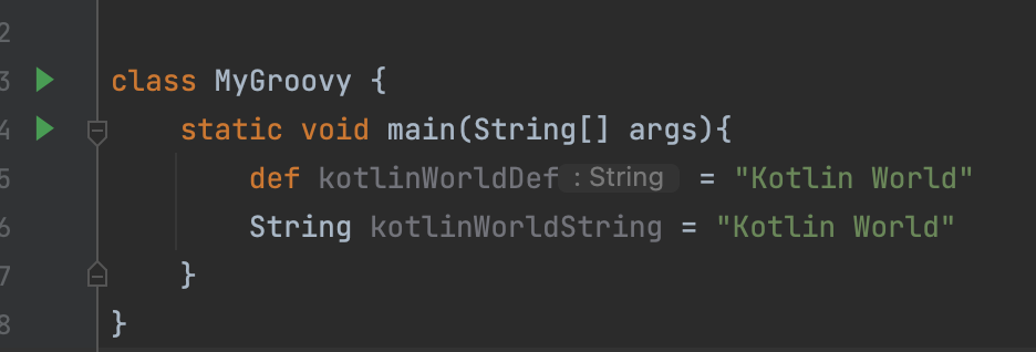 - Groovy는 변수의 Data Type을 정의하기 위해 별도의 타입을 구체적으로 정의할 필요 없다. def로 선언하면 똑똑한 컴파일러가 타입을 추론하기 때문이다. 물론 구체적으로 지정해도 상관없다.