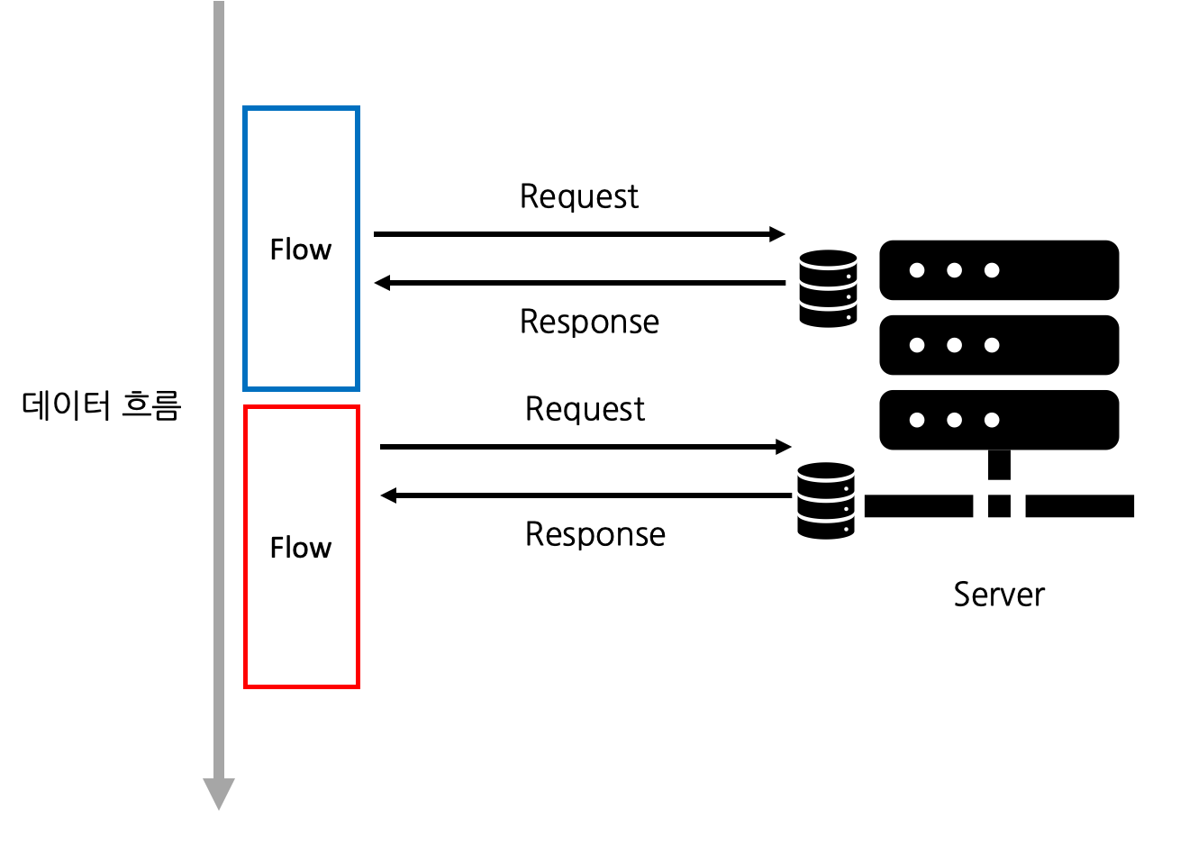 이를 편하게 하기 위해 데이터 흐름을 만들고 해당 흐름에 순차 처리 로직을 위한 로직을 넣는 방식의 프로그래밍이 많이 사용되었다. 대표적인 것은 Rx와 Coroutine의 Flow 등이 있다. 하지만 flatmap이나 map 등으로 데이터를 변환시키는 것은 결국 우리가 하나의 페이지를 그리기 위한 데이터를 조합하는 것을 클라이언트 단에서 처리해주어야 하기 때문에 클라이언트 단의 로직이 복잡해지는 문제가 있다. 로직이 복잡해지는 것은 유지보수가 어려워진다는 뜻이다.