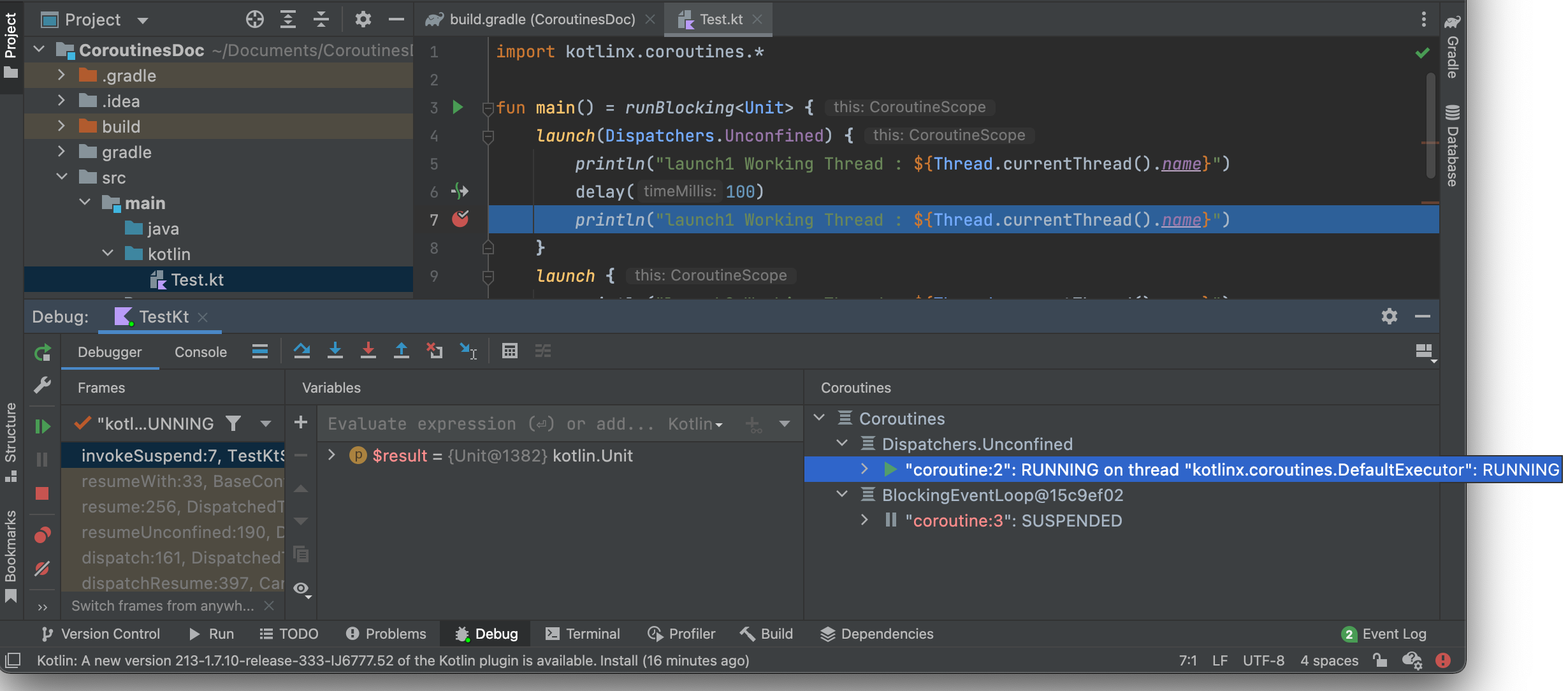 Kotlin Coroutines는 일시 중단 후에는 다른 스레드에서 실행될 수 있기 때문에 디버깅을 하기가 매우 어렵다. 이 글에서는 디버깅을 하기 어려운 예 중에 가장 간단한 예시를 제시할 것이다.