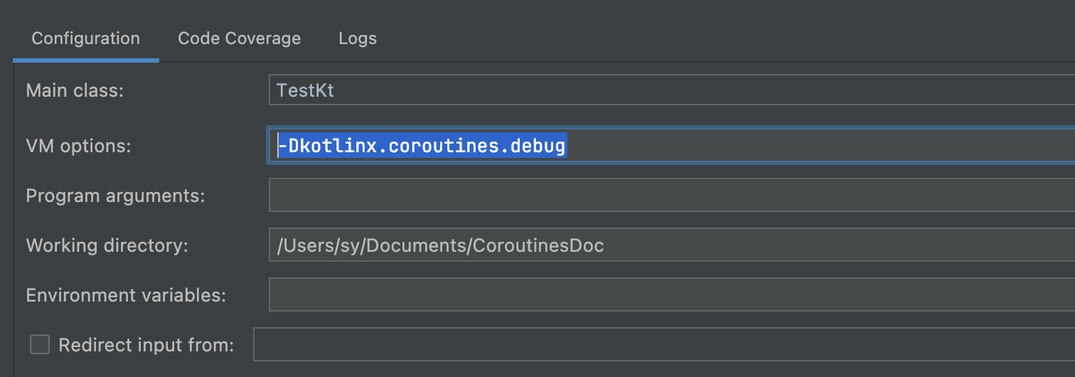 로깅을 통해 Coroutines 디버깅하기 위해서는 JVM을 위해 특정 옵션이 추가되어야 한다. 이를 추가하기 위해 아래 과정을 따라하자.