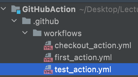 .github/workflows 폴더에 test_action.yml 파일을 생성한다.