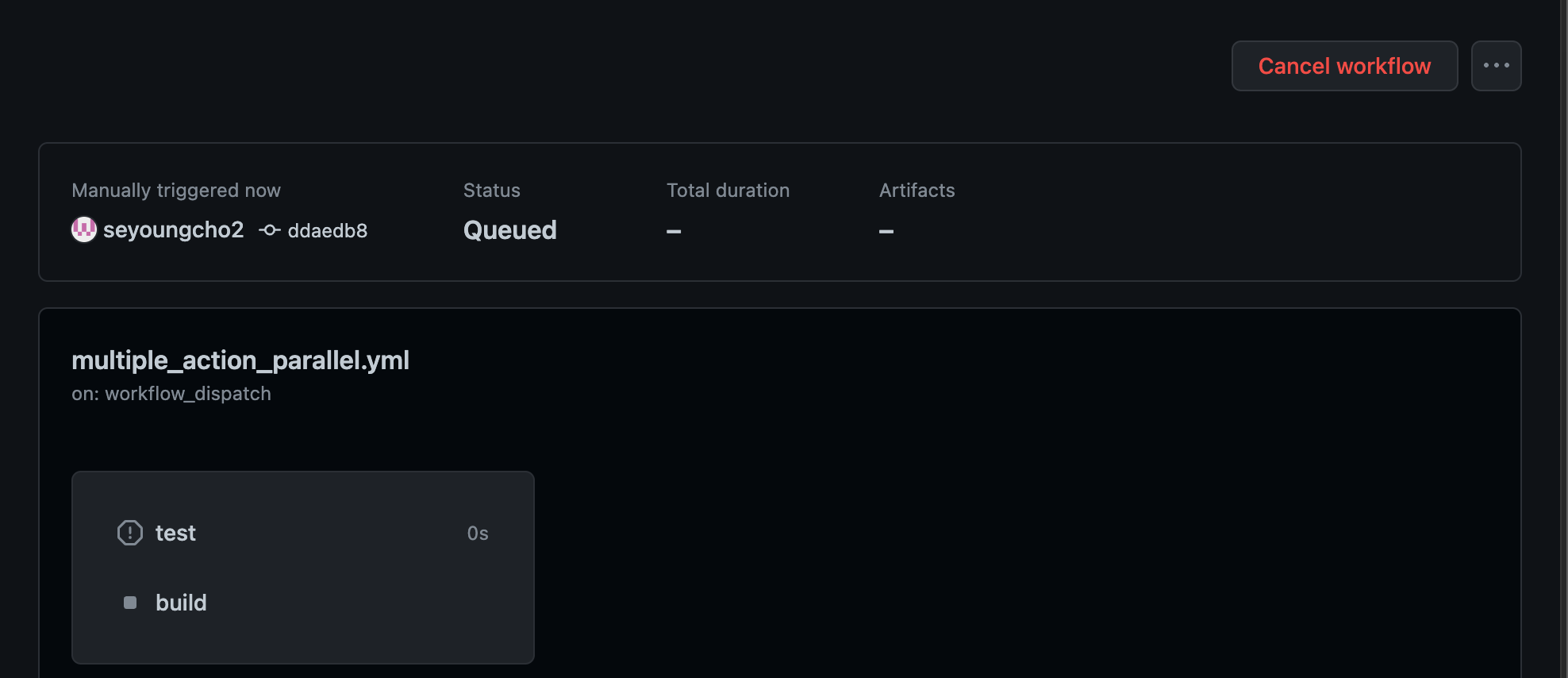 Cancel workflow 버튼을 눌러 직접 Workflow를 취소 할 수 있다.