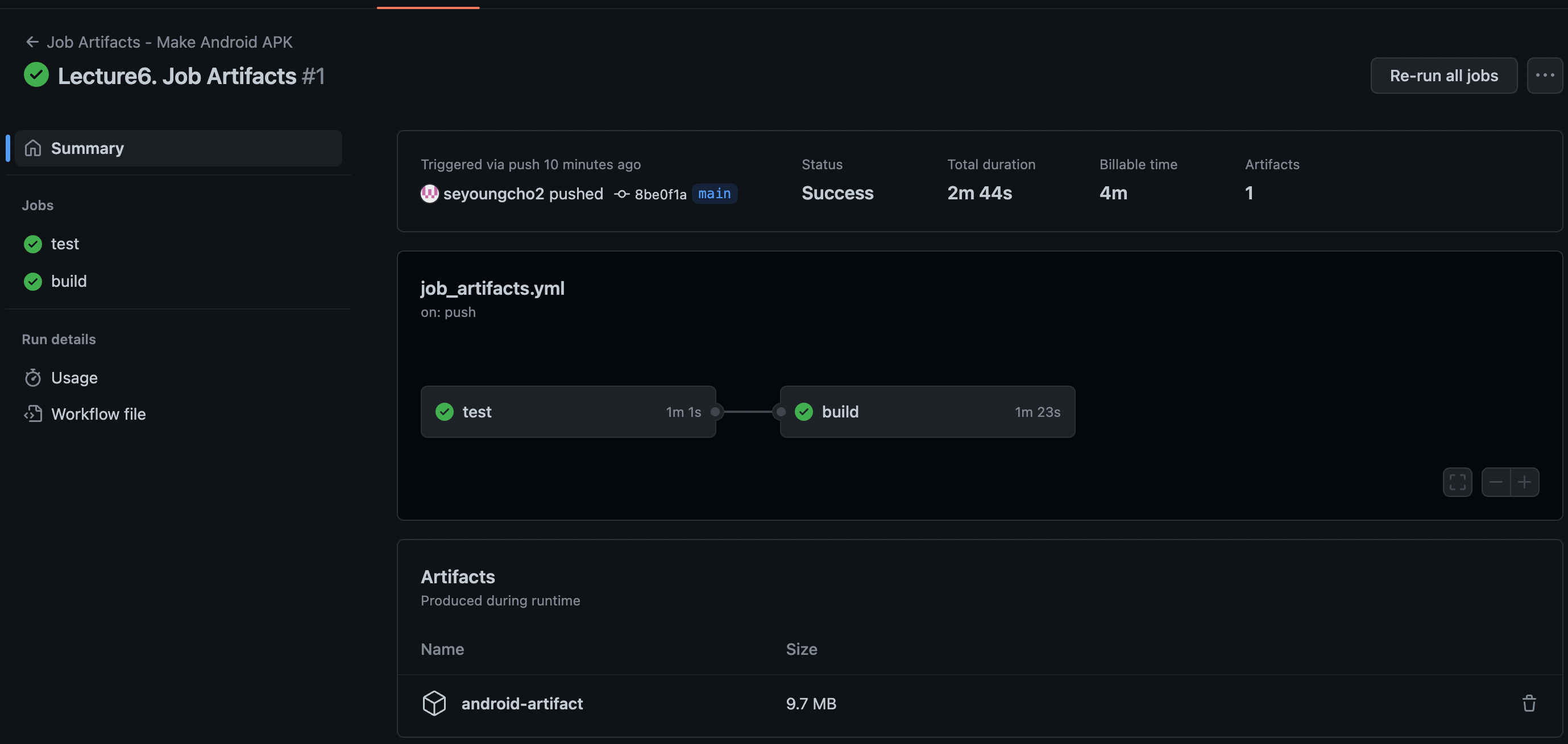 이번 시간에는 GitHub Action의 Job Artifacts 기능을 사용해 빌드한 안드로이드 파일을 저장소에 upload 하고 다운로드 가능한 상태로 만드는 방법에 대해 알아볼 것이다.