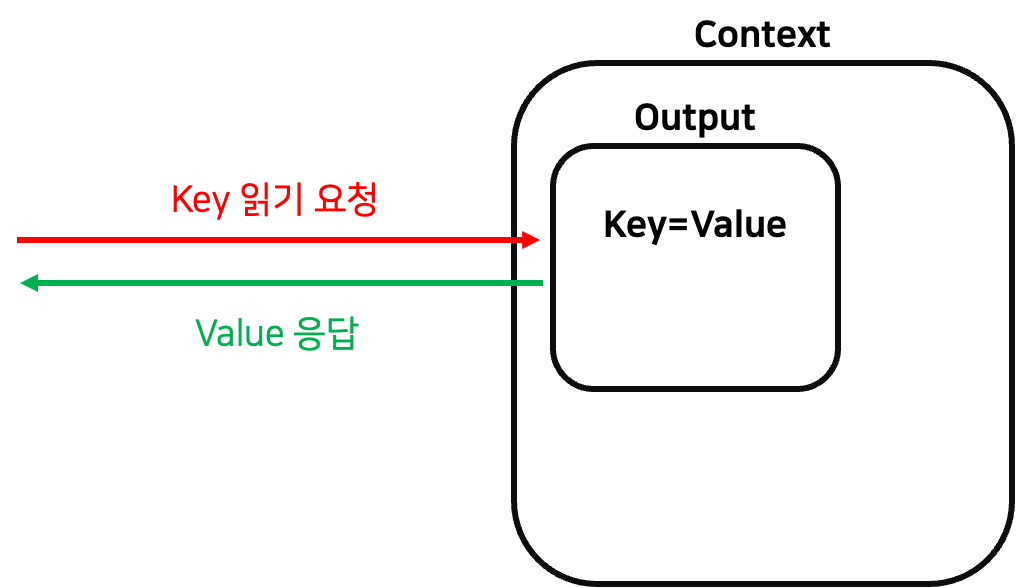 Job 간에 데이터를 전달하기 위해서는 outputs 객체에 데이터를 저장해야 한다. outputs 객체는 GitHub Actions의 Context에 포함되어 있으며, key-value 형태로 데이터를 저장한다. 시각적으로 과정을 살펴보자.