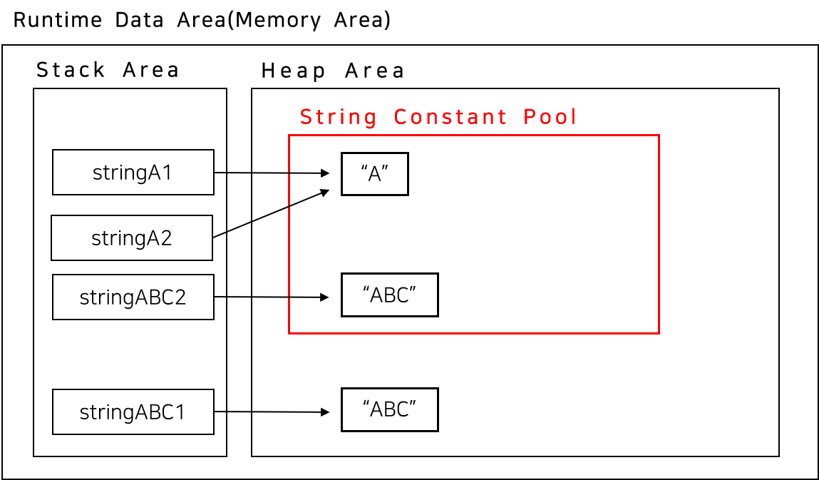 JVM에서 변수를 저장하게 선언하면 해당 변수는 Heap Area에 저장된다(그림1 참조). String도 Heap Area에 저장되는 것은 마찬가지인데 String은 많이 쓰이는 변수인 만큼 조금 특이한 방식으로 저장된다.