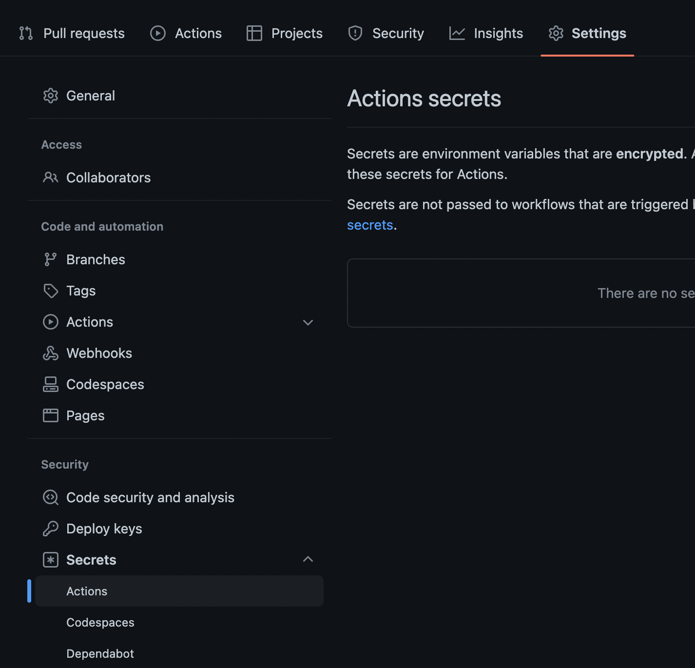1. Settings -Secrets - Actions 에 진입한다.