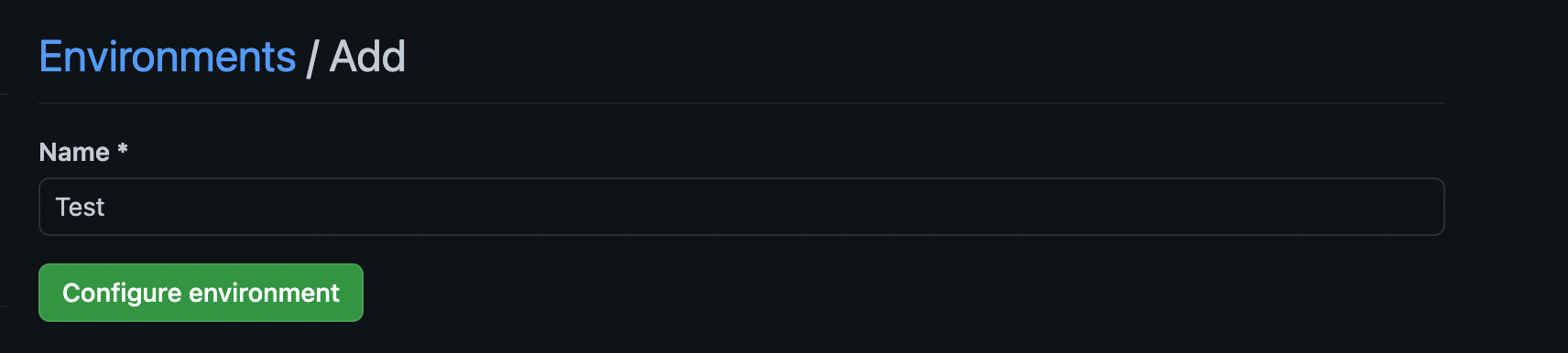 이름에 Test라고 설정하고 Configure environment 버튼을 눌러 Environment를 생성한다.