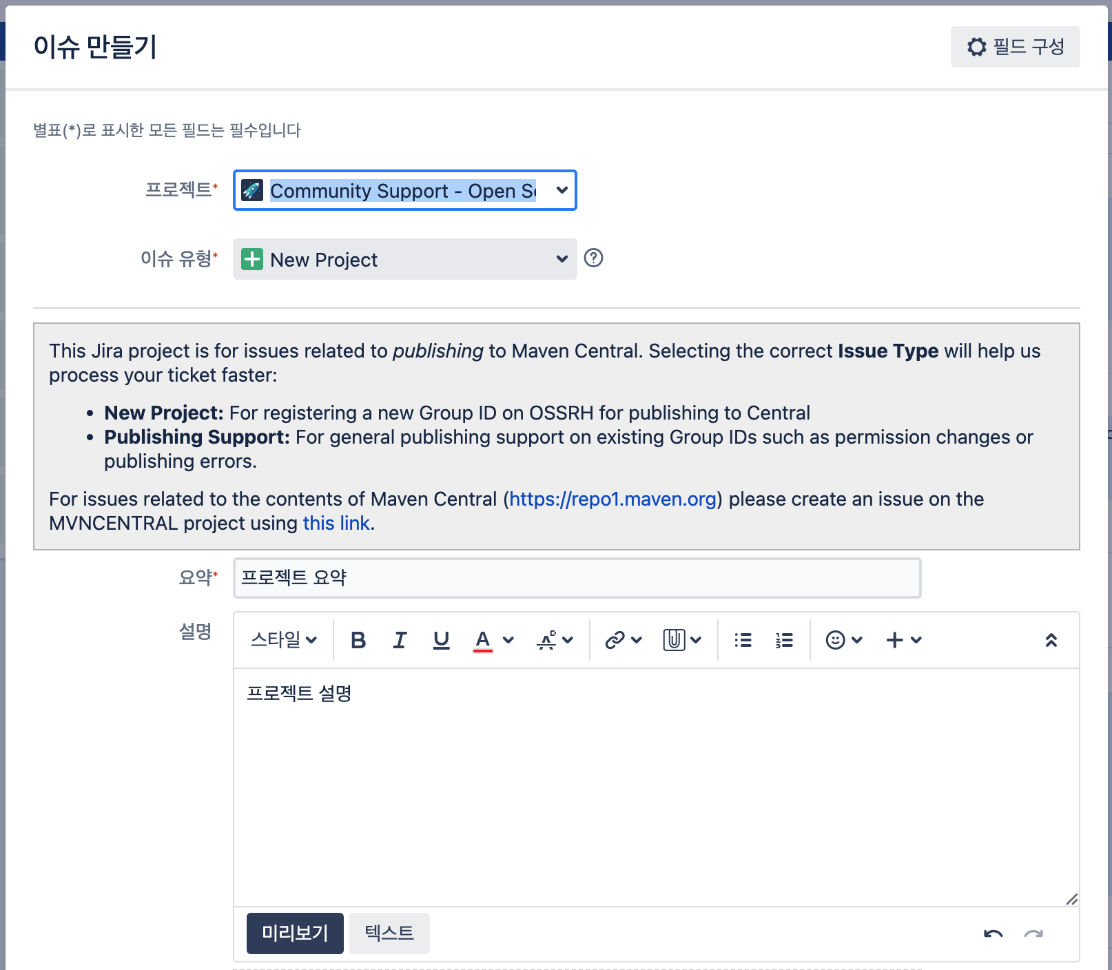 Jira에서 오픈소스 프로젝트 이슈 생성하기