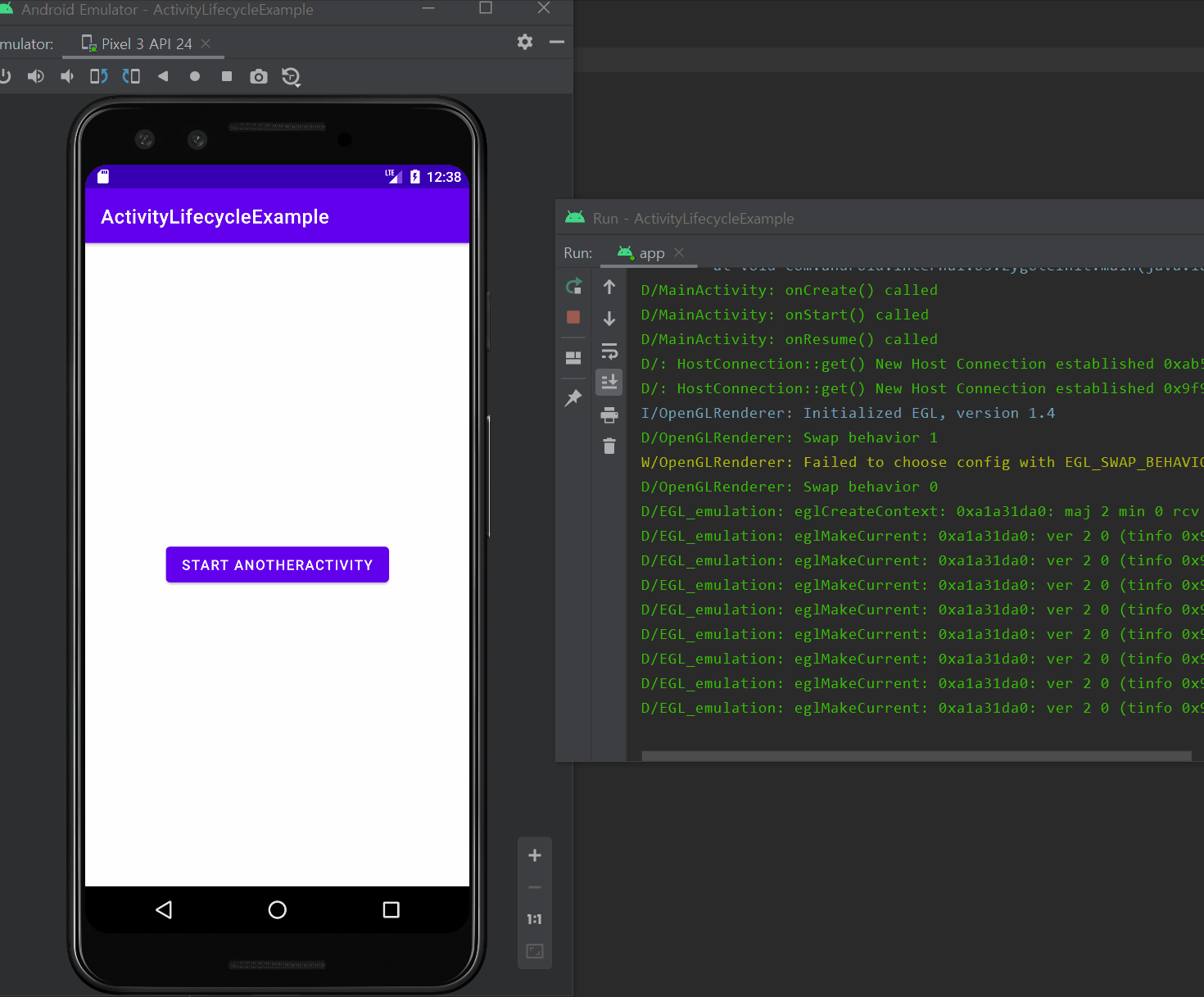 - D/AnotherActivity: onStart() called - AnotherActivity가 켜지고 있다.