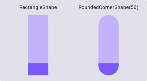 RoundedCornerShape으로 설정할 수도 있다. RoundedCornerShape percent=50으로 설정해 완전히 둥글게 만든다.