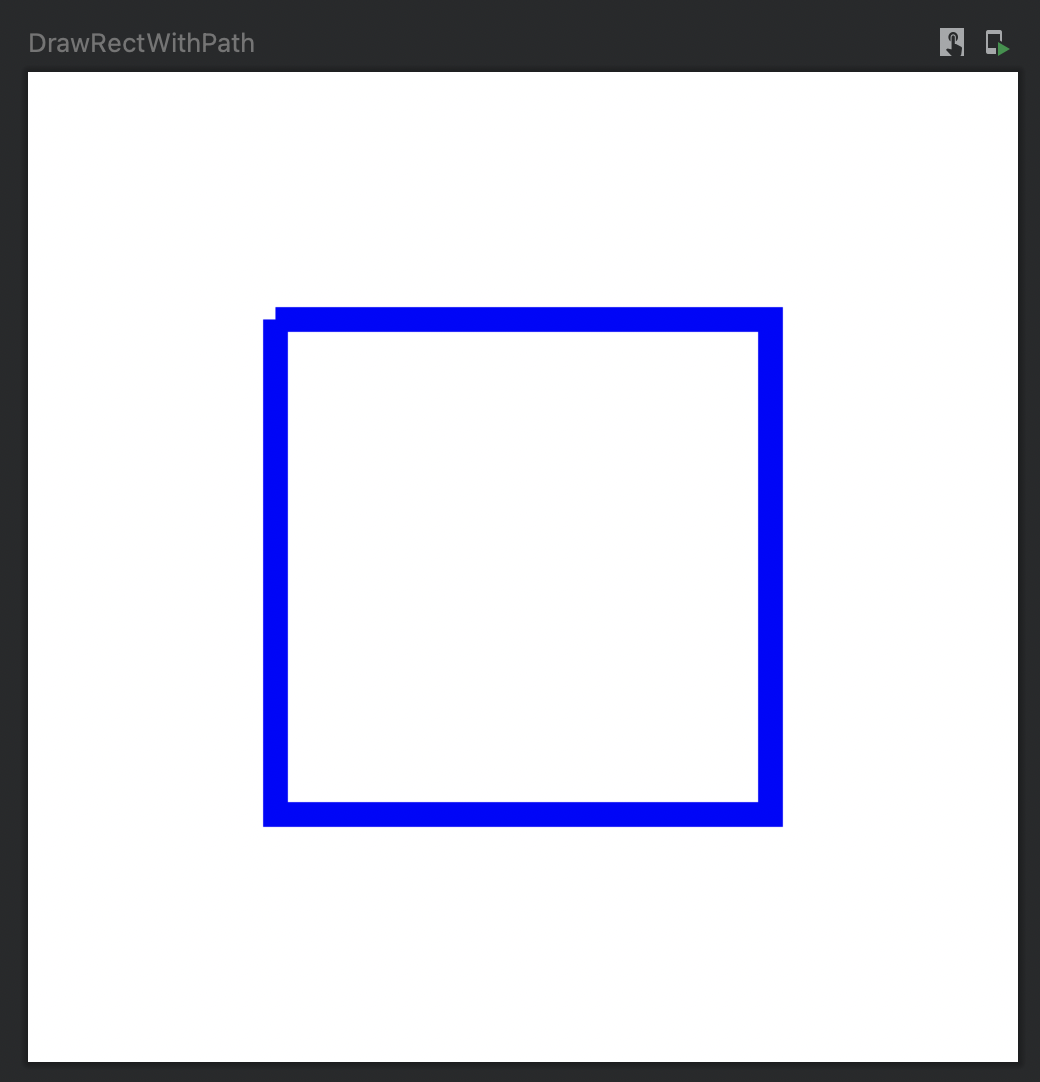 이렇게 왼쪽 위 꼭지점이 살짝 네모 형태가 되는 이유는 시작점(100, 100)과 lineTo 를 통해 만든 새로운 기준점이 같다고 해서, 도형이 만들어지는 것이 아니기 때문이다. 위 Path는 직선 4개로 이루어져 있을 뿐이며, drawPath는 각 직선을 그릴 뿐이다. 이를 해결하기 위해서는 Path를 닫아야(close) 한다