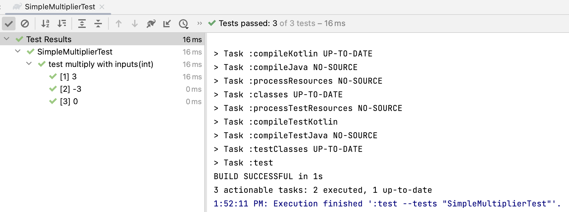 따라서 위 테스트를 실행해보면 다음과 같은 결과를 볼 수 있다. 3, -3, 0이 input 값으로 입력 되었을 때 테스트가 모두 통과한 것을 확인할 수 있다.