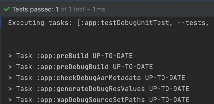이런 방식으로 정적 메서드를 안드로이드 이미지에 영향 받지 않는 메서드로 대체하면, 테스트가 성공하는 것을 볼 수 있다.