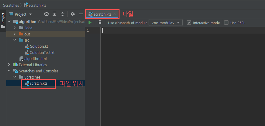 - 스크래치 파일에는 클래스 fun 모두 들어갈 수 있으며 Class와 다르게 fun main을 작성할 필요 없이 가장 바깥에 있는 코드를 돌려줍니다.