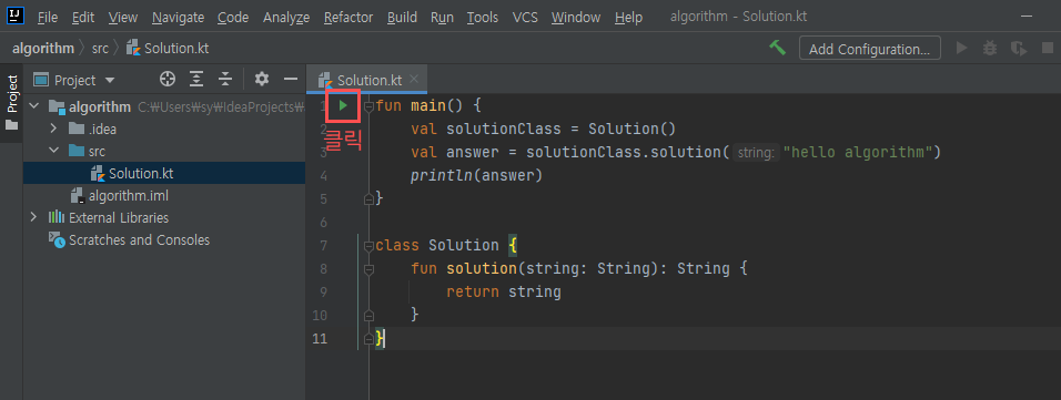 Solution.kt 안에 작성