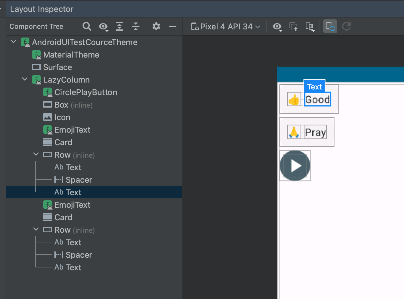 모든 작업을 마친 후, Layout Inspector을 확인한 결과 다음과 같이 나오는 것을 확인할 수 있었다.