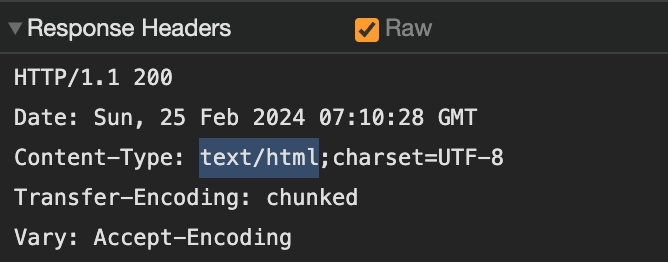 실제로 크롬 브라우져에서 F12를 누르고 개발자 창을 켠 후, https://kotlinworld.com/ 에 접근하면 다음과 같은 응답이 오는 것을 볼 수 있다. Content-Type이 text/html이고 Response Body로 html 파일이 온다.