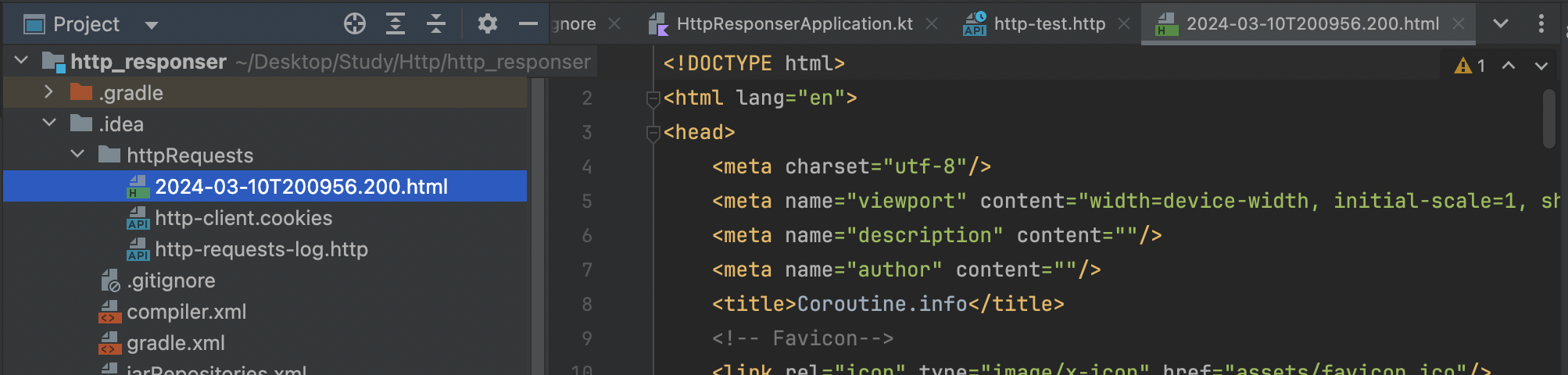 어떤 HTTP Responser가 왔는지에 대한 파일은 프로젝트 루트의 .idea/httpRequest에 저장되며, 파일을 열면 어떤 body 값이 왔는지 확인할 수 있다.