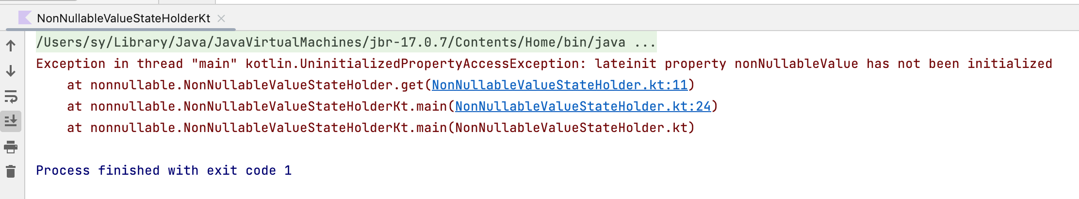 // Exception in thread "main" kotlin.UninitializedPropertyAccessException: lateinit property nonNullableValue has not been initialized