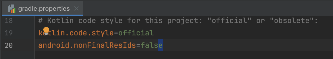 이를 해결하기 위해서는 gradle.properties 파일에 gradle 옵션에 리소스의 Id의 값을 기존처럼 final로 설정하도록 수정해줘야 한다.