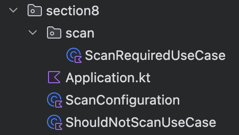 ShouldNotScanUseCase는 com.kotlinworld.spring.di.section8 패키지에 있는 스캔이 되면 안되는 유즈 케이스이다.