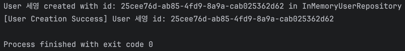 UserCreator 객체의 createUserWithRandomId가 호출됐을 때, InMemoryUserRepository의 createUser가 호출된 것을 볼 수 있다.