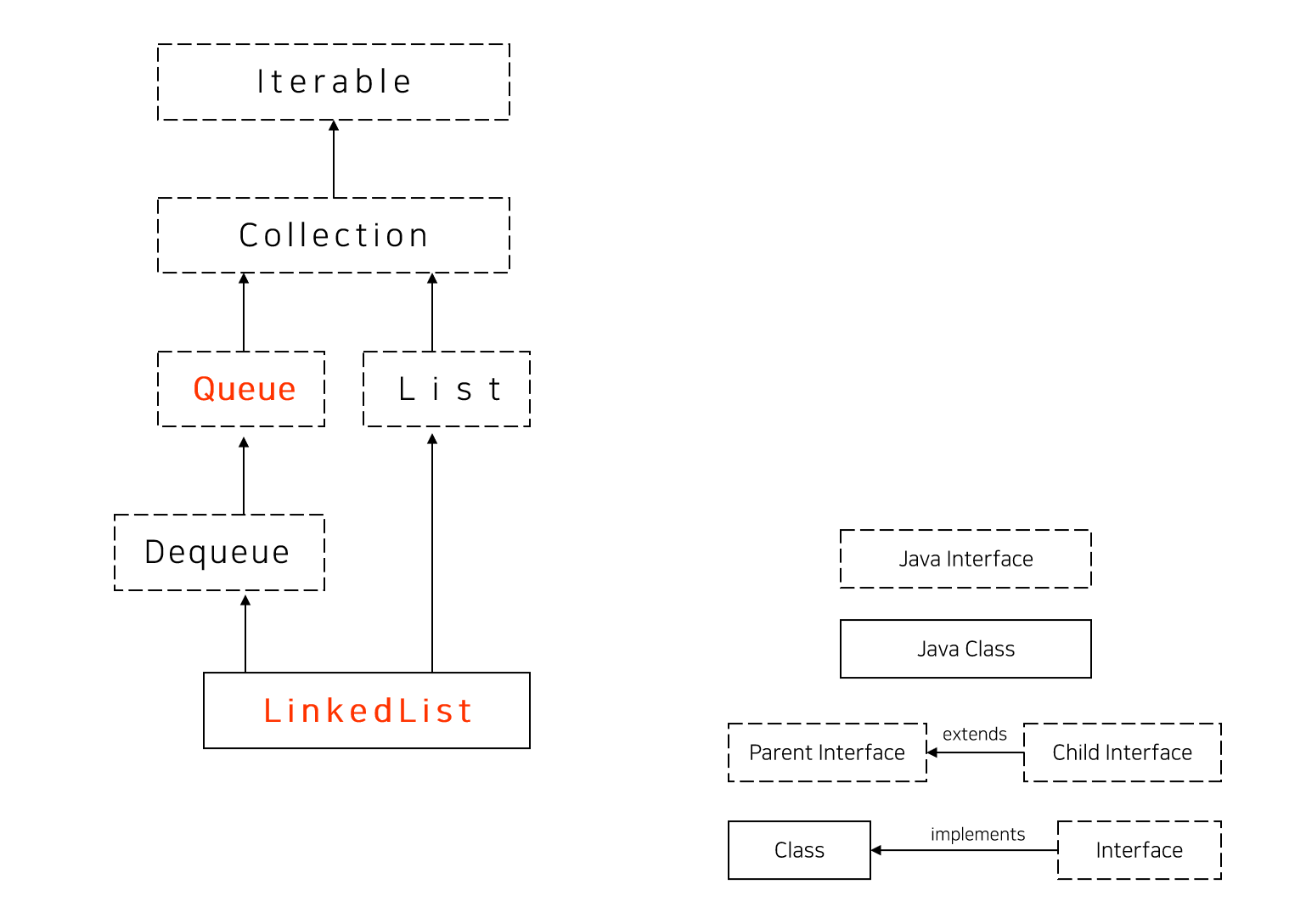 하지만, Queue는 단순한 인터페이스이므로, 인터페이스를 구현하는 Class를 사용해야 하는데, 우리는 우리는 그중 LinkedList를 사용하여 Queue를 다루어본다.
