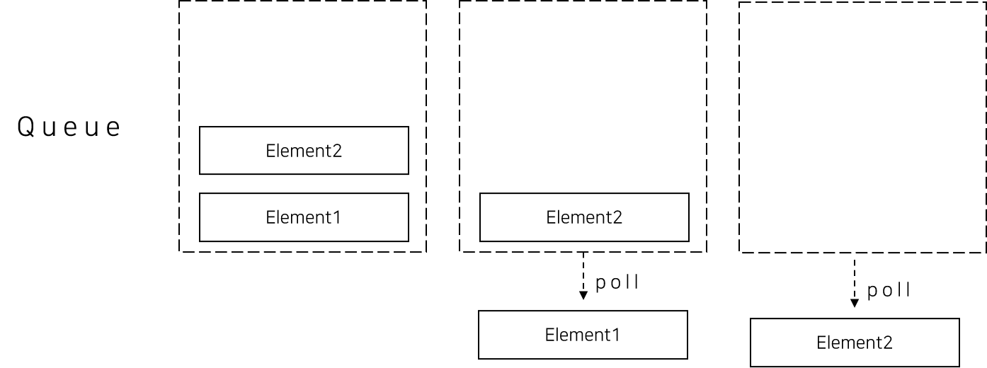 element와 peek은 현재 Queue의 Head에 어떤 값이 들어있는지 확인하기 위한 연산이다. Queue를 변화시키지 않으면서 맨 앞에 있는 element의 값을 보기 위한 것이다.