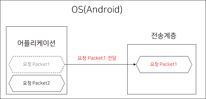 <그림3>에서는 Packet1을 전송계층이 어플리케이션 계층으로부터 전달 받는 상황을 가정한다.